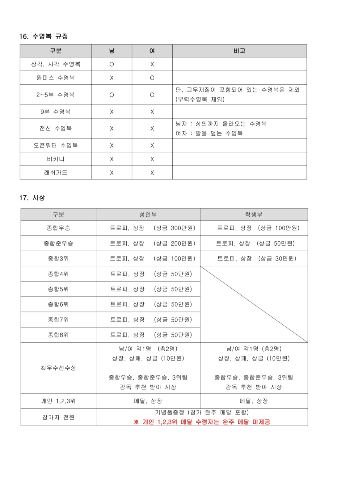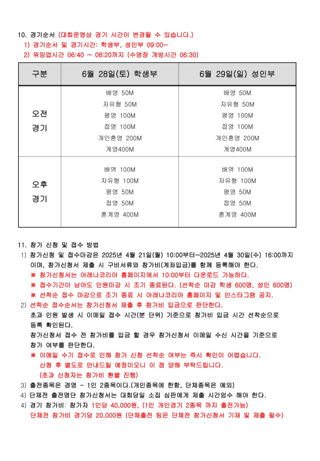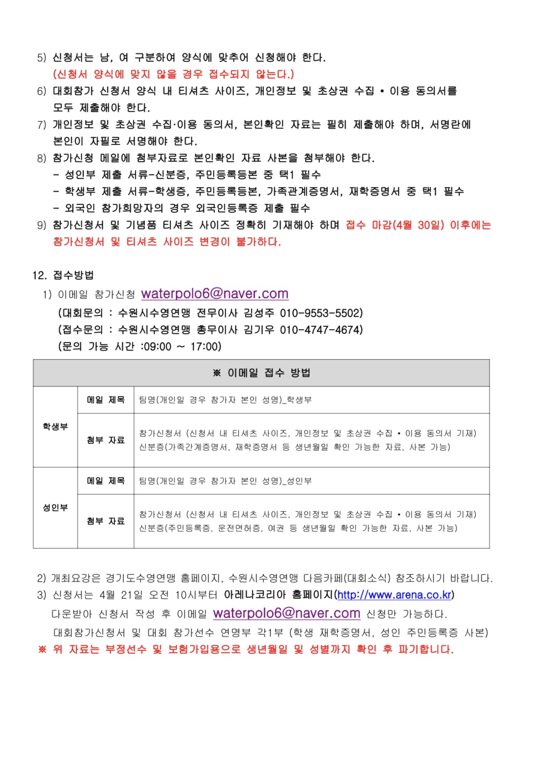 이메일 waterpolo6@naver.com 접수 - 참가비: 개인 40,000원 / 단체전 1종목 20,000원
