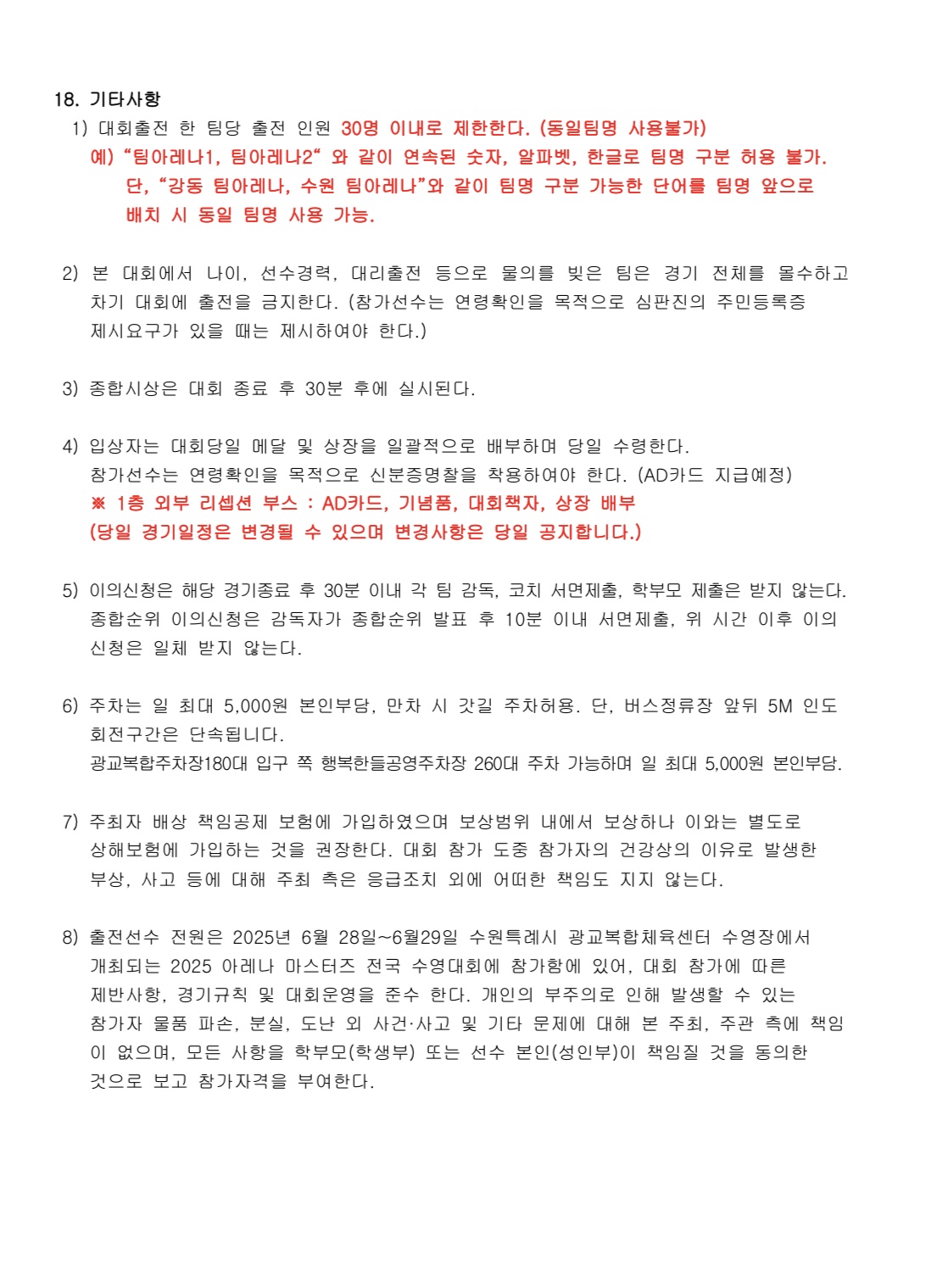 - 접수 문의: 수원시수영연맹 총무이사 김기우 010-4747-4674