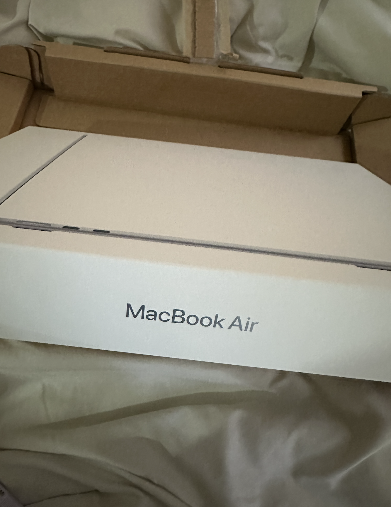 패키징 박스를 열었더니 맥북에어 m4 박스가 나왔어요. 깔끔. 심플.