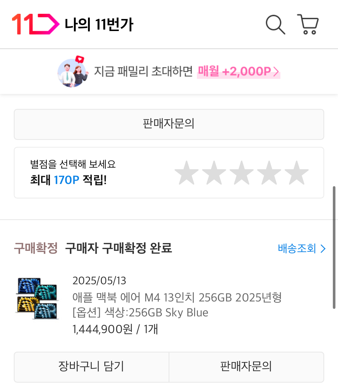 며칠 전, 11번가에서 맥북에어 M4 모델 미국판을 직구로 주문했습니다.